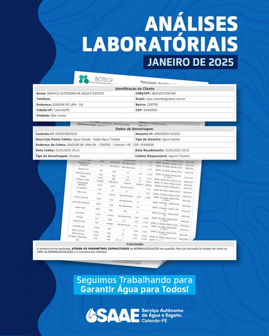 O SAAE Catende segue rigorosamente os padrões de qualidade para garantir que a água distribuída à população seja...